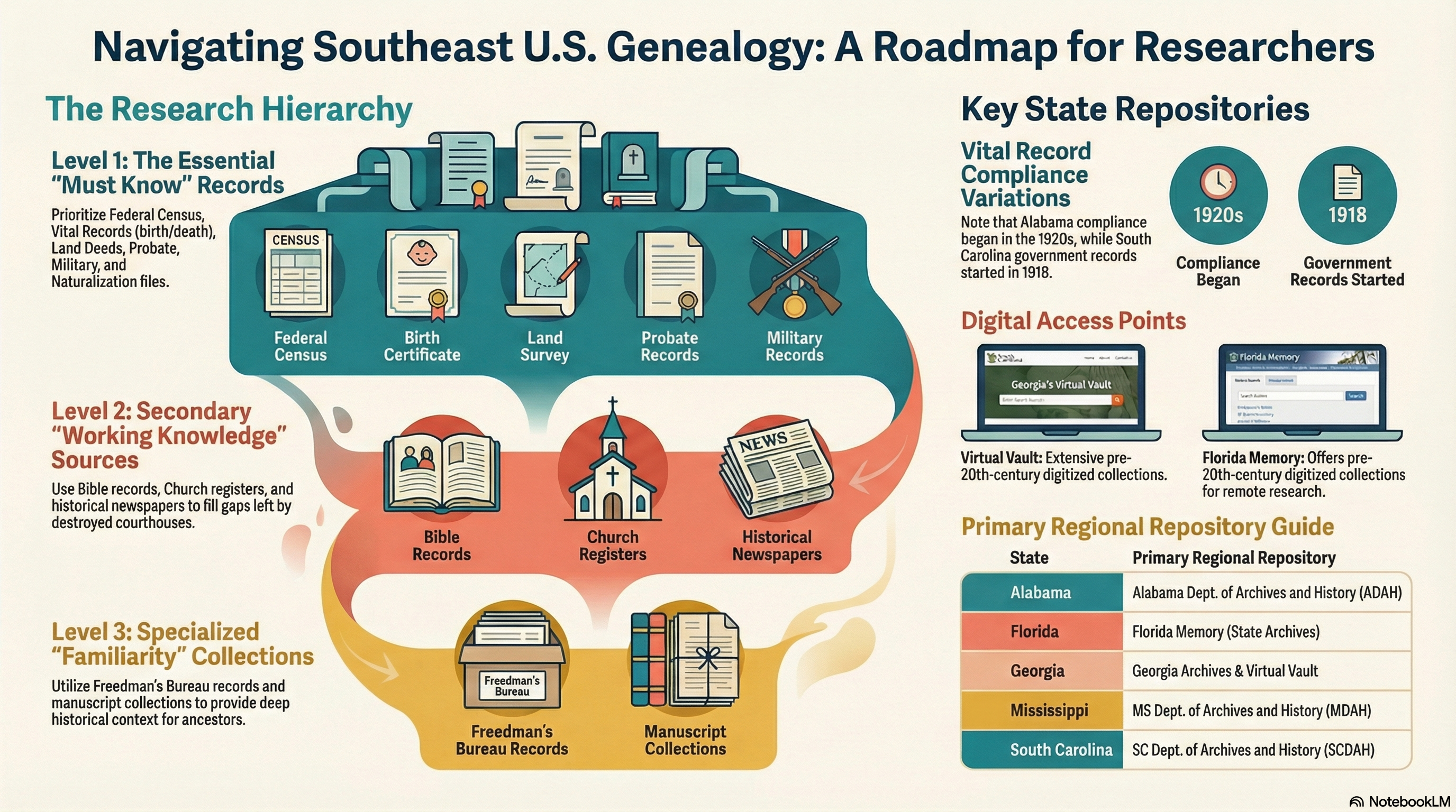 While the Southeast presents unique challenges due to inconsistent record survival and regional variation, it also offers rich opportunities for meaningful discoveries, making it a rewarding area of focus for dedicated genealogists.