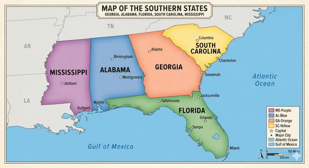 The mix of early colonial beginnings and later historical events in the Southeast United States creates a challenging but rewarding area for research. Descendants earlier people in this region are particularly keen on learning about their origins, and genealogists who thoroughly understand the history and available resources of the region are ready to help.
